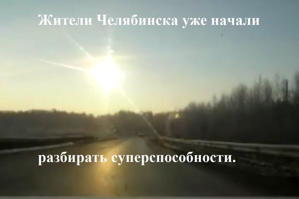 да я даже дома смотрел видос (тот, что с балкона снят) на средней громкости, и то подпрыгнул от звука взрыва... к слову, у меня в новостях в контакте уже все новости картинками всякими с метеоритом захламлены. небольшая подборка доставляющих картинок на тему)