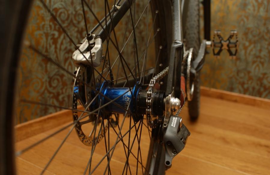 Вот собственно мой байк для стрит-триала. После многочисленных экспериментов остановился именно на такой конфигурации с жесткой вилкой, одной звездой сзади и двумя спереди. Переключаюсь между передними звездами ногой