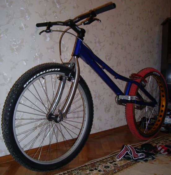 Имхо слишком большой разброс цветов... Золотой задний обод, синяя рама, красная покрышка, а переднее колесо классическое. Но впринципе ничего так.