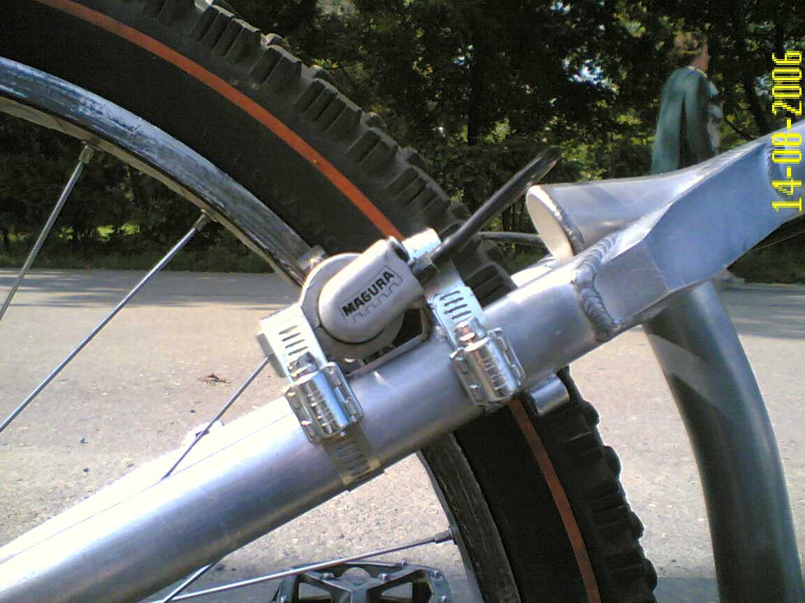Сирвал нижнюю резьбу на раме.Точнее выкрутил ее вместе с болтом .Где то видел на форуме про стальные хомуты.Вчера попробовал так сделать.Вроде держит нормально,но от бустера пришлось отказаться .