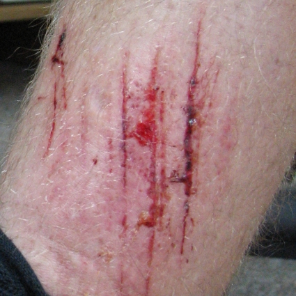 Накануне я упал и рассек ногу педалью, сорвало щиток и размочило ногу!!!