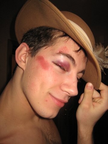 да что тут непонятного)написано же перебор) перебрал он похоже мальца с напитками... а откуда синяк взялся, наверно и не помнит)))