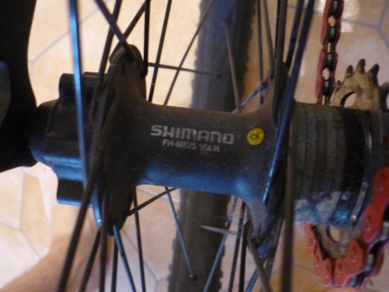 Втулки Shimano LX зад, и тож какая-то шимано перед. видя заднюю втулку все дивятся как я ее не убил.
