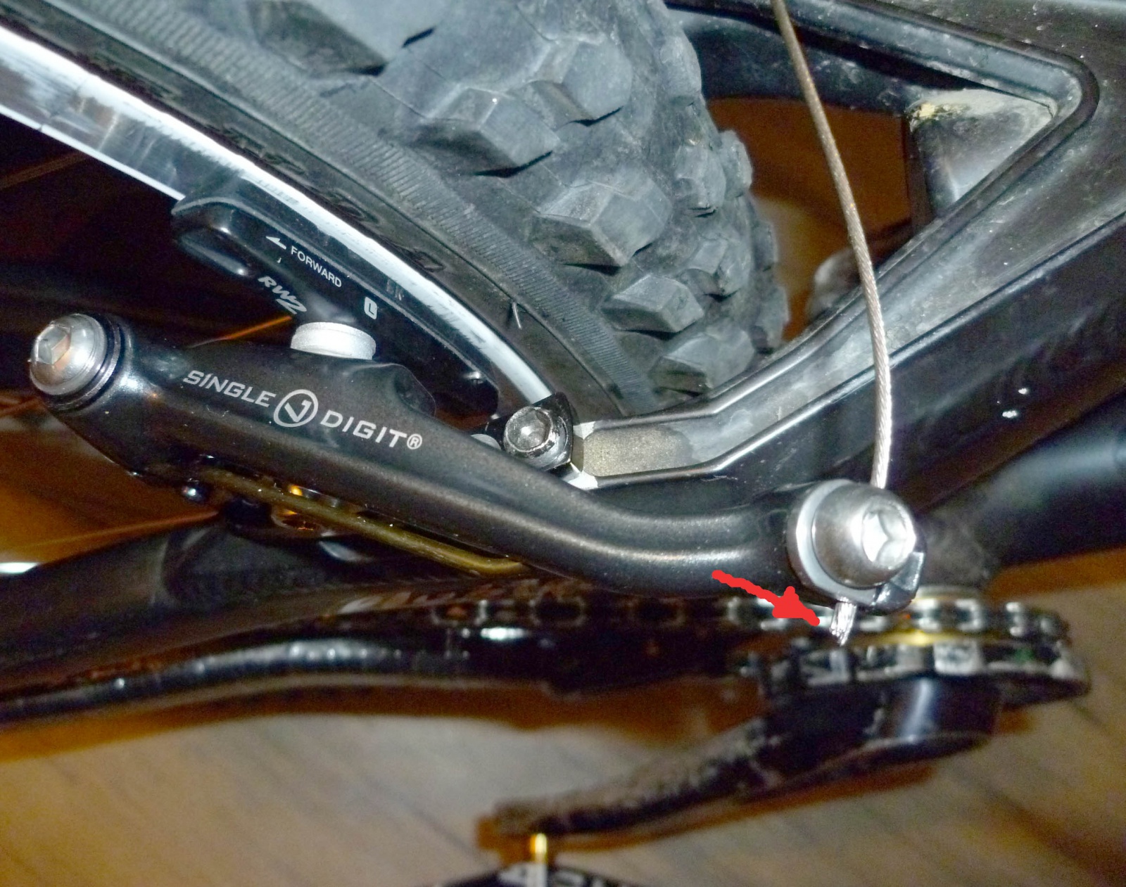установил вибрейк на зад.авид сингл дигит 7.не могу понять зачем рычаги так сильно торчат в разные стороны.я же их цеплять буду ногами(а концом тросика можно штаны порвать и кожу).может это тормоз для переднего колеса?по моему рычаг должен идти как я нарисовал зеленым.то есть вдоль рамы.