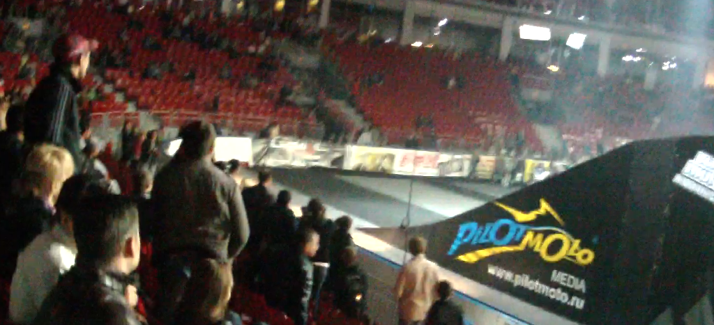 Изначально меня смутил тот факт, что данное мероприятие проходит в хоккейной (ледовой) арене. Помещение конечно не маленькое, но оно не маленькое для хоккея, а для ребят на моциках по моему не очень. Ну да ладно организаторам виднее.