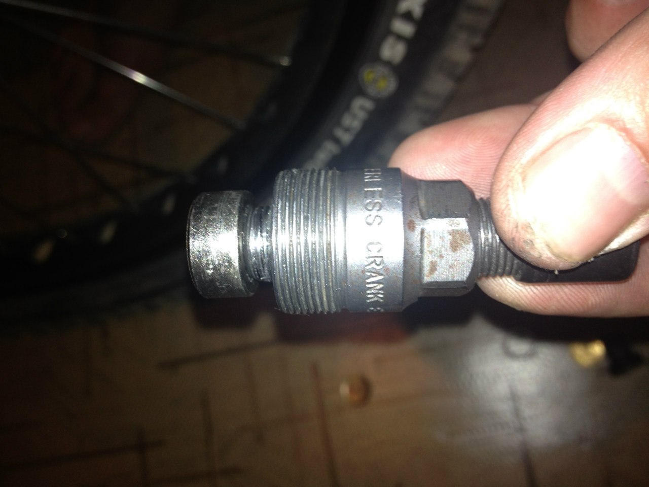 Ну съемник какой дали... Сунуть в ось что-нибудь подходящее хотел, перетряс свой ящик с барахлом - не нашел. Да и думаю теперь уже поздно съемником под ИСИС лезть ибо резьбе плохо стало