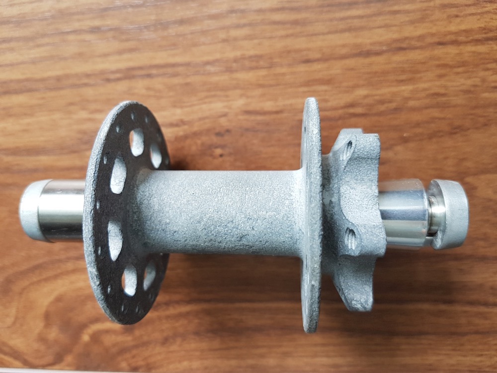 Передняя втулка ЕСНО 2008 года на 32 спицы. Новая, НО после неудачного эксперимента по снятию анодировки методом Байктриалс.ру (средством для труб). В результате она стала очень странного серого цвета с налетом. Промы, ось, болты соответственно в идеальном состоянии, на них никакие эксперименты не проводили))