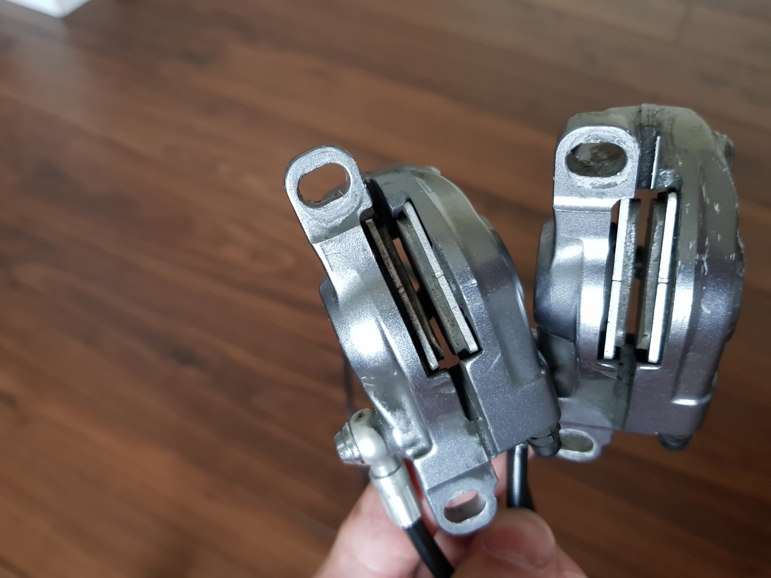 Состояние хорошее, работают без нареканий. Колодок осталось еще прилично (см. фото). Гидролинии: передняя 61 см, задняя 149 см. Роторы в комплект не входят.