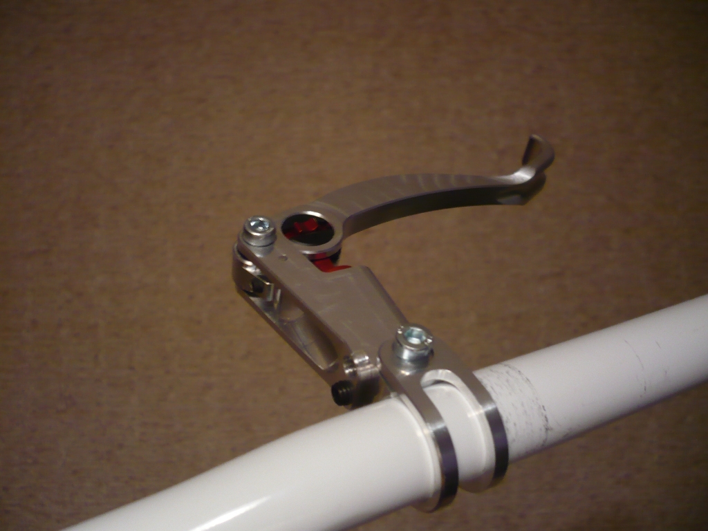 Итак: там-сям подсмотрел, что-то сам придумал, CAD/CAM, Al 7075-T6, ЧПУ 5 осей, рычаг на закрытых промах, разъёмное крепление на руль, пока поставил "внутренности" Racing Line. Впереди тесты.