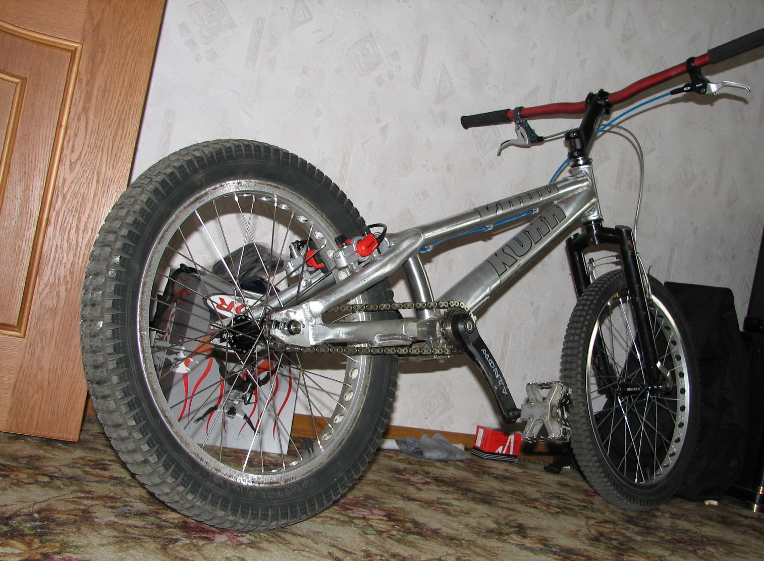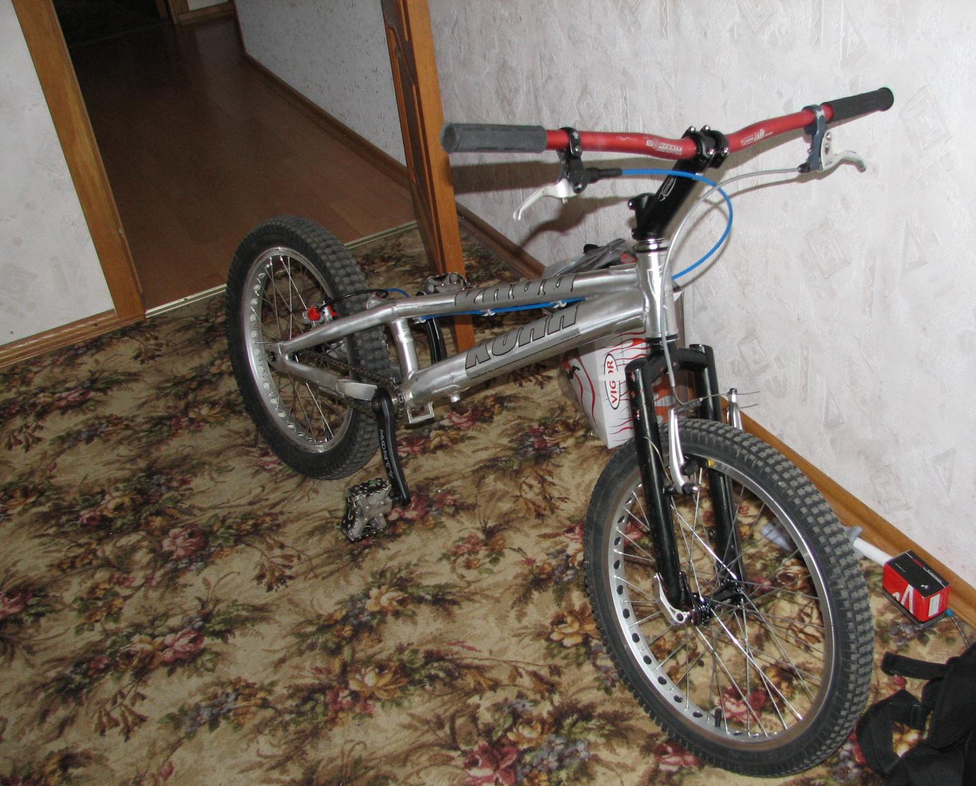 3.Вилка хромоль тяжелая от Старка 2004 мода с дропаетам под бмх-ось, поэтому при установке колеса с мтб-втулкой появляются проблемки.. лечится с помощью больших шайб и коротких трубочек под диаметр бмх-оси, со внутренним диаметром в размер оси на втулке(чтобы сделать как-бы переходники) с бмх на мтб ось.