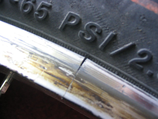 у меня вмятин нет, видимо, они появляются из-за тонких покрышек и низкого давления, а шов у меня впорядке пока, но и щель такая совсем не страшна