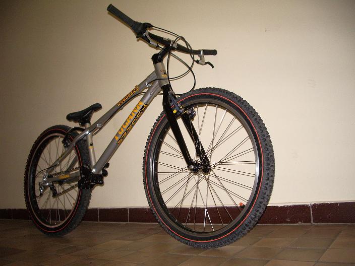 Собрал байк хорошему знакомому. С виду оч даже ничего. В действии байк просто абалденный! Чесное слово, я неожидал что байк получится с таким незначительным весом(примерно 12 кг.). Очень манёвренный, дёргается легко. Стритовые фишки как и триальные идут очень класно!