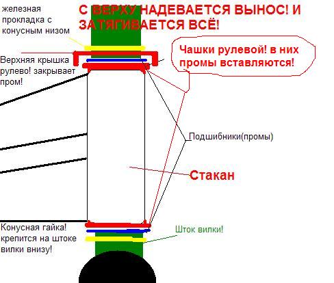 Кароче у меня на байке начали немного болтаться вилка и вся хрень вместе ( короче говоря ПЕРЕДОК ) Сколько не закручиваю не откручиваю шестигранник на выносе (ОТКРУЧЕННОМ) не помогает...пробовал вставать на байк и закручивать со снятым предним колесом - НИКАК... Разбирал, собирал, смазывал, осматривал подшипники и всю гадость внутри - Вроде всё нормально... Может якорь там хреновый, потому, что когда затягиваю он у меня со хрустами проскакивает хз... Я думаю проблема с рулевой или как там её... Кароч люди ЧТО ТАКОЕ РУЛЕВАЯ??? Как она выглядит и из чего состоит. Пробовал консультироваться с BMX'ерами, но они тупые и достойного ответа мне не дали... Сказали, что мол рулевая это руль, сцуко, вилка и вынос вместе... Кароч запутали меня совсем гады, может вы мне поможете, покажете и подскажите... Если не лень, хотя-бы фото разместите пожалуйста и опишите как её собрать правильно (этот люфт возможен из-за неправильной сборки)...Видел рулевую в каталоге "Веломира" и вообще ничего не понял...Похожа на катушку от спиннинга, а такой детали на байке вроде нету...очень прошу помогите начинающему, надеюсь, люди добрые тут есть...
