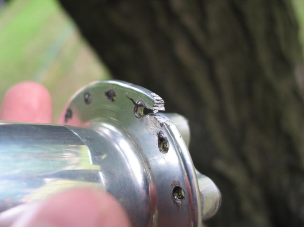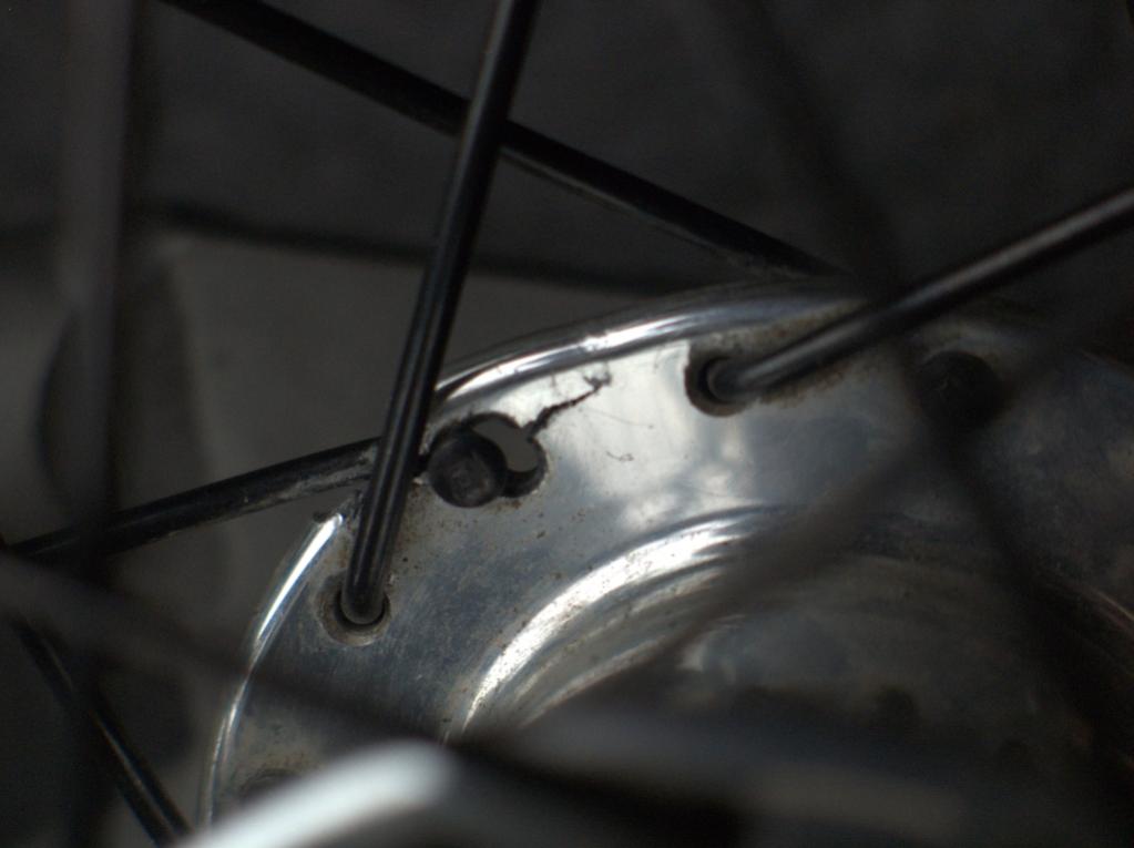 Следов от точечных ударов не нашёл, скорее усталостная трещина, спицы перетянуты не были, от перегрузки должно было порвать несколько спиц. Начинаю тёрки с крисом, а вдруг поменяют ещё.