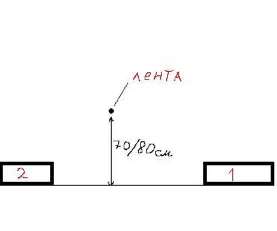2.натягиваем ленту(чуть ближе к препятствию №2,чтоб не задевать ленту мордой)