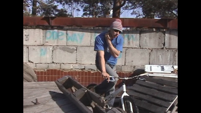 Это парень в смешной шапке на велике без седла!
