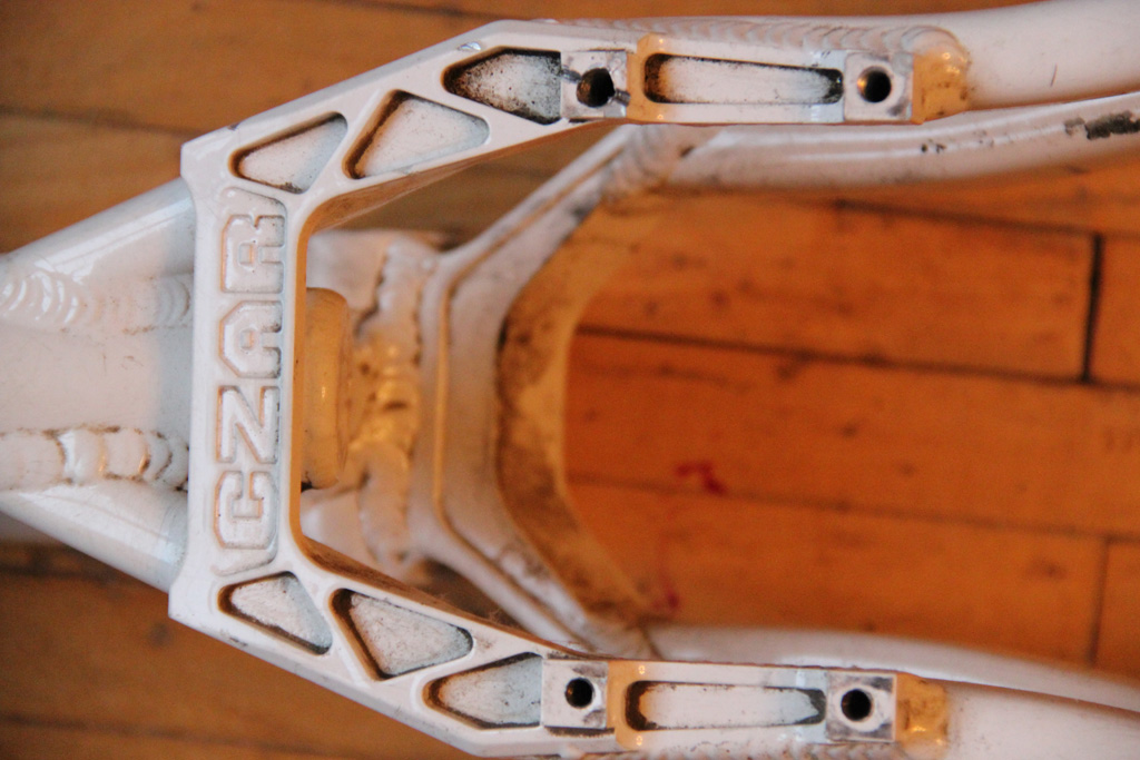 Рама Czar 26" long (1095/385/+35/72). Состояние хорошее, катались аккуратно, вмятин на нижней трубе и на перьях нет. Была сорвана резьба в одном из креплений магуры, сейчас там резьба большего диаметра. Цена 3800р.