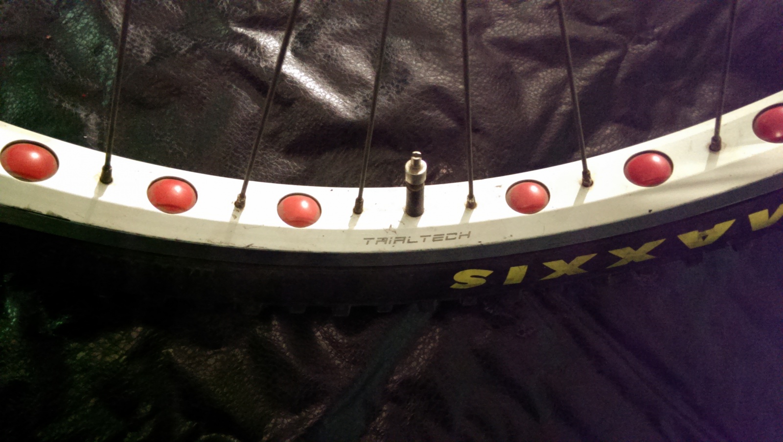 обод одинарный триалтеч белый, спицы нонейм, втулка жи красная