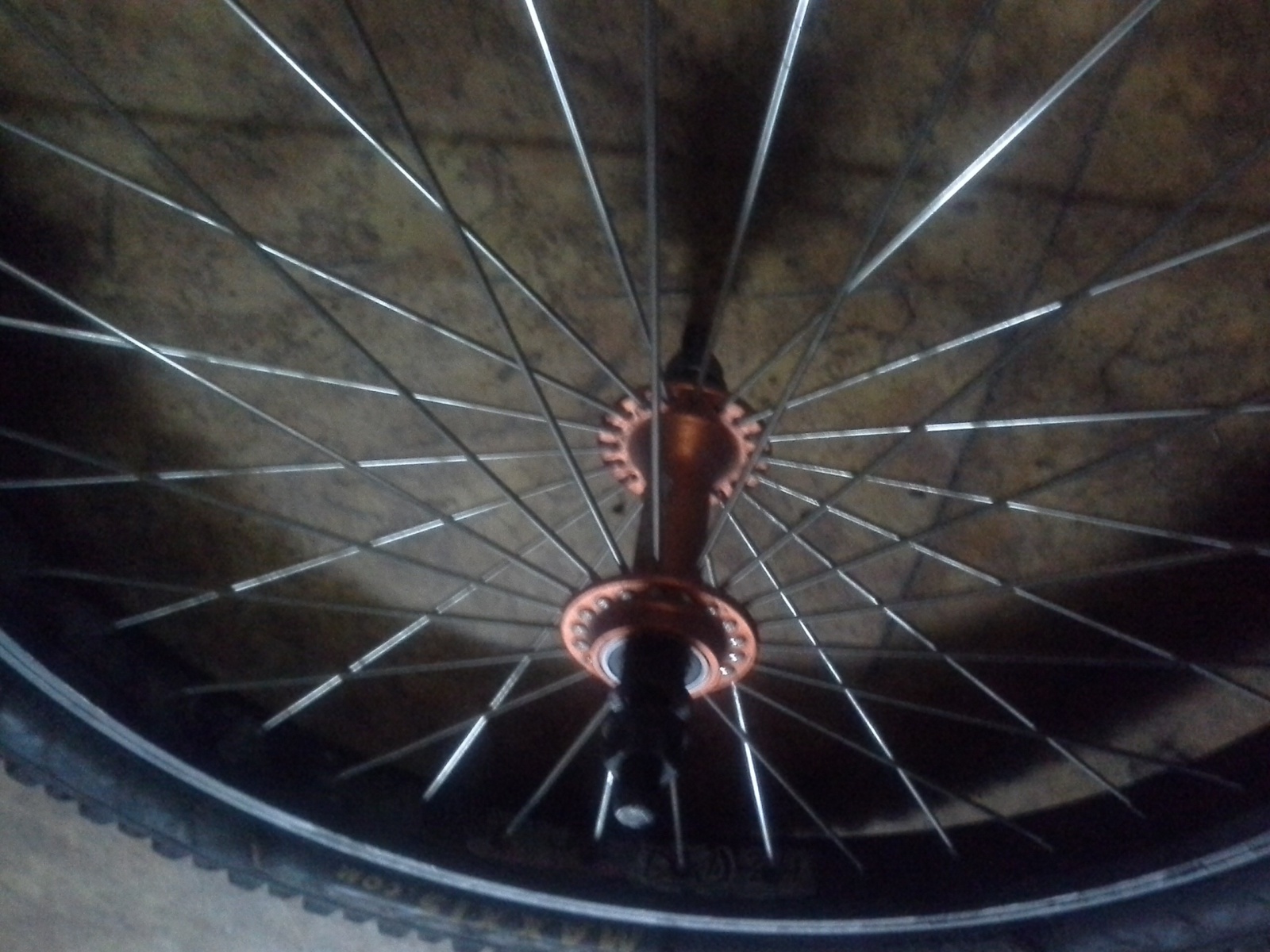 Переднее - втулка от БМХ, под гайки! Обод ДМ 24, спицовано солнышком. Не лайт, конечно, зато супер-крепкое. 1500 р.