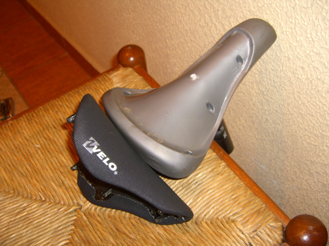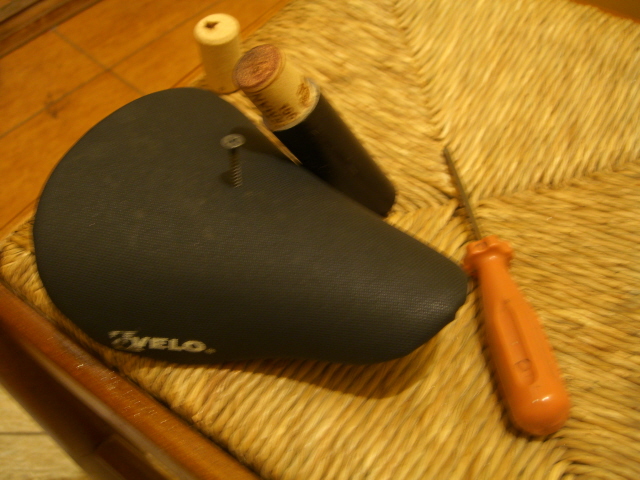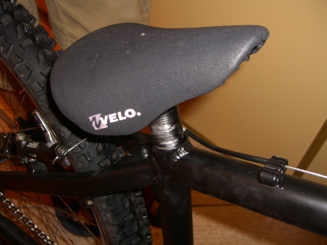 вместо того чтобы крепить сидушку изолентой,можно просто воспользоваться нажлачкой,т.е. обвернуть ею посидельник и вставить штырь-у мя так сделано,держит вполне неплохо!