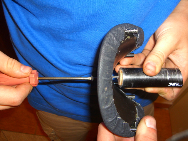 а изолентой нада крепить чтобы сама мякушка не слетела, ибо она непосредственно тока одним саморезом к штырю прикручена и выходит , что передняя часть люфтит