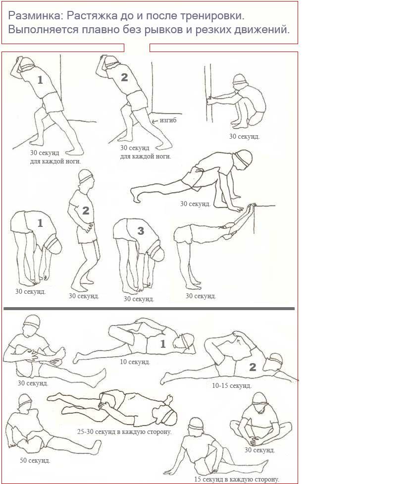 перед каждой покатушкой дома делаю зарядку минут 15 ( 1-лежа на животе, выгибаться назад 2-турник) также на улице небольшая разминка перед самой покатушкой,