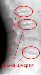 Грыжей Шморля называют "выпячивание" межпозвонкового диска в тело выше- или нижележащего позвонка. В отличие от обычной межпозвоночной грыжи, которая выпадает в просвет позвоночного канала.