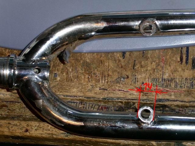 3) ну и собственно отверстие диаметром 14мм его размер зависит от того где вы добудите шпиньки, я свои отрезал от старой вилки (фотка), если кто-то задумает выкрутить из рамы то можно нарезать резьбу в переходнике и вкрутить его туда.