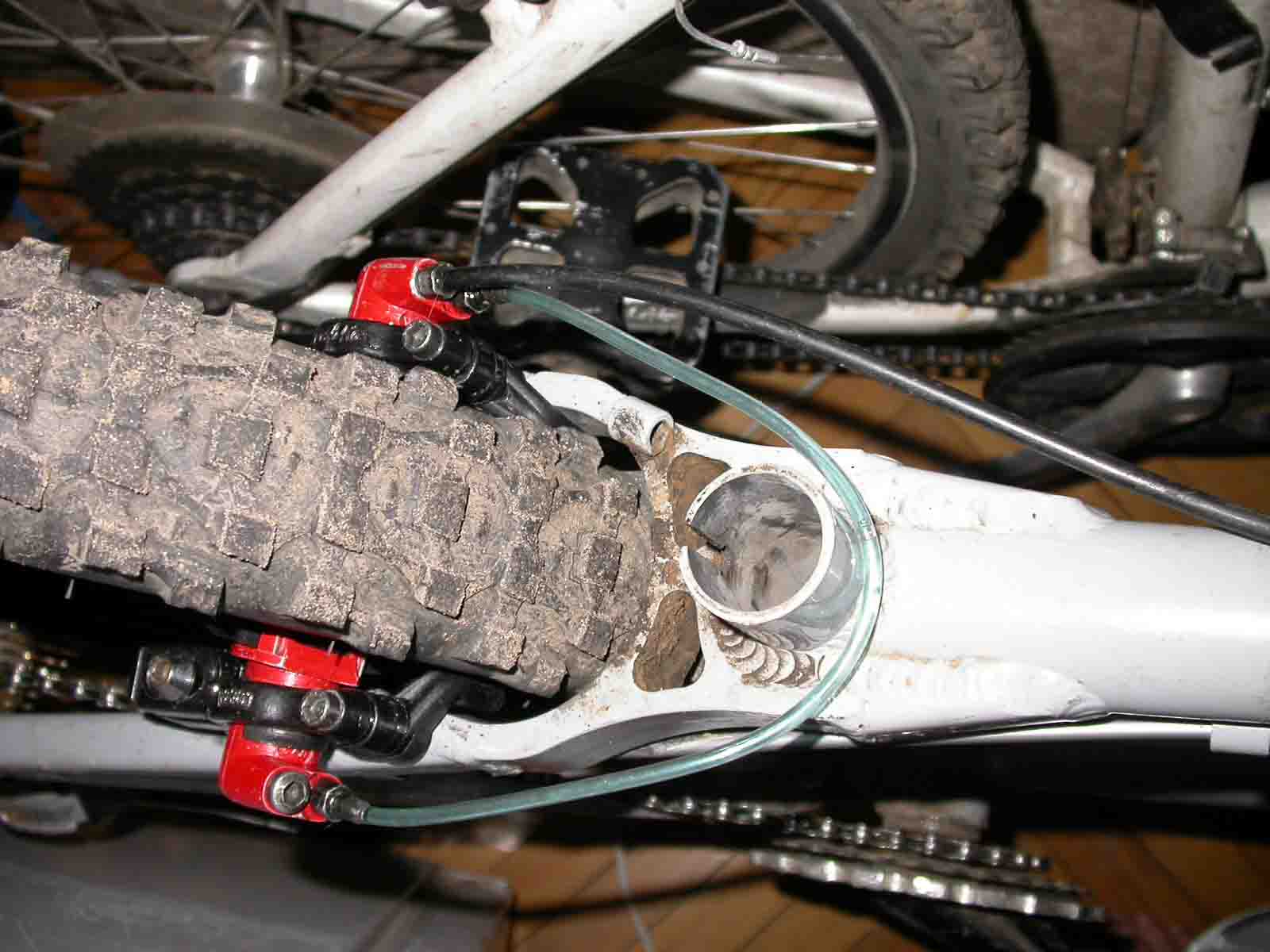 Вот порвалась гидролиния между бочками - думал все УЖАС! Нести в ГИАНТ где мне там (за 500р!!!) починят магуру. Ну я не долго думая пошел к дяде своему - ну начали мы там пытаться - гидролинию укорачивать, короче БЕДА! Ну он и говорит а давай поставим на ее место КАТЕТОР от капельницы - я говорю мол че за фигня - протечет! Он говорит я такие на СТАНКИ ставлю на работе и ничего не течет! Я говорю давай - вот что получилось смотрите сами.