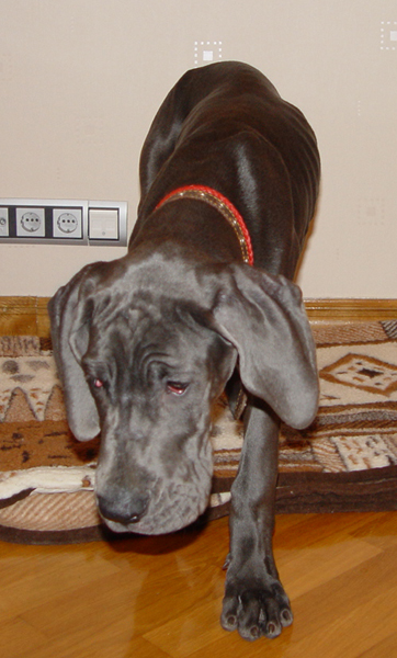 прикольный малой. я вот себе тож 5 дней назад куил собачку. тока она уже подросла, но еще щенок. ей 4 месяца. немецкий дог. они выростают где-то 80см в холке и весят под 80 кг. вот фотки...