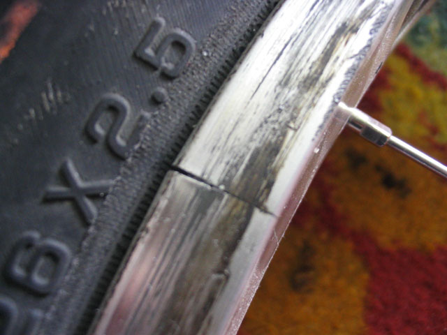 думаю дело в спицовке...протяни спицыимхо должен практически уйти разрыв.У меня такая хрень была когда я еще дропал на 2х сосисе(обод был dx32)разошелся примерно на миллиметр...потом протянул всё(спицовка - 4 креста была)и шов даж сейчас как новенький