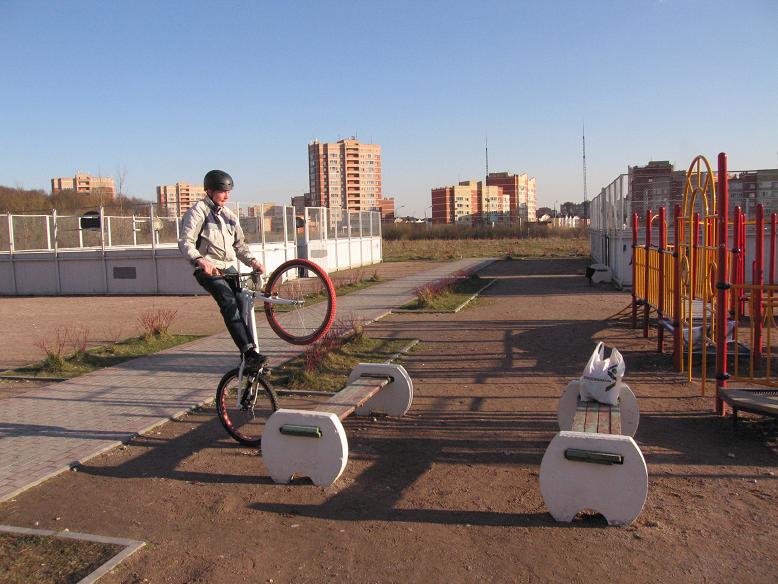 Но буквально сразу после разминки гэпов на скамейках сломалась задняя ось... Закинув байк домой и переодевшись, мы пошли продолжать рубить, правда уже без вела :)