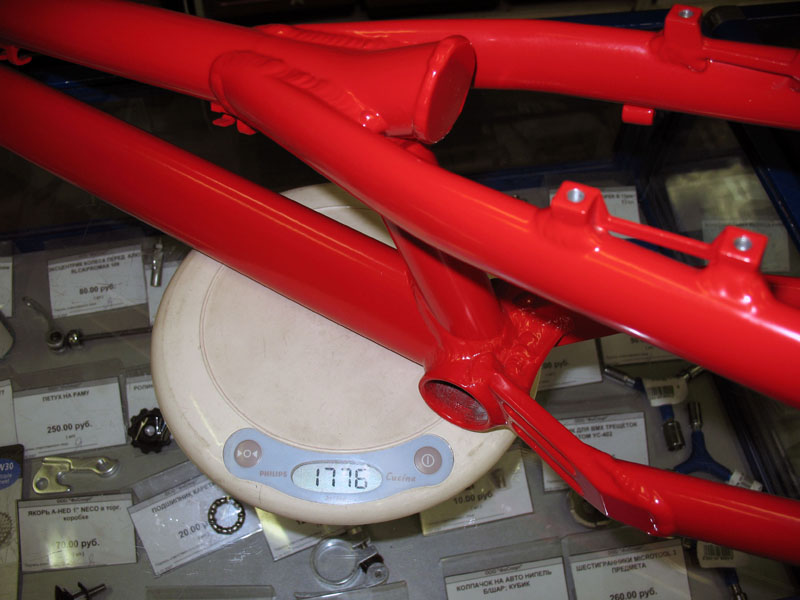 полностью красный велик не смотрится, особенно награможденным кажется педальный узел...