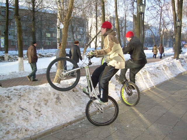 § ...кто говорит, что в -15, -20 триалить "нереально"- вы сначала подумайте хорошо, ведь есть зимние виды спорта, такие как лыжи, бобслей, и тому подобное. Тоесть организм если здоровый, в зимнем триале нет ничего необычного, мало того- так как есть возможность "подскальзнуться" тебе приходится постоянно оценивать покрытие, держать баланс, четко на темы запрыгивать- тренируется контроль байка. Круто ребят, отлично!