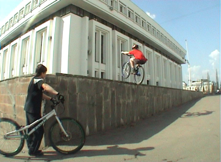 ахахаха))) судя по тому как стоит переднее колесо, то получается ему надо гепать снизу, ты помотри высота то какая