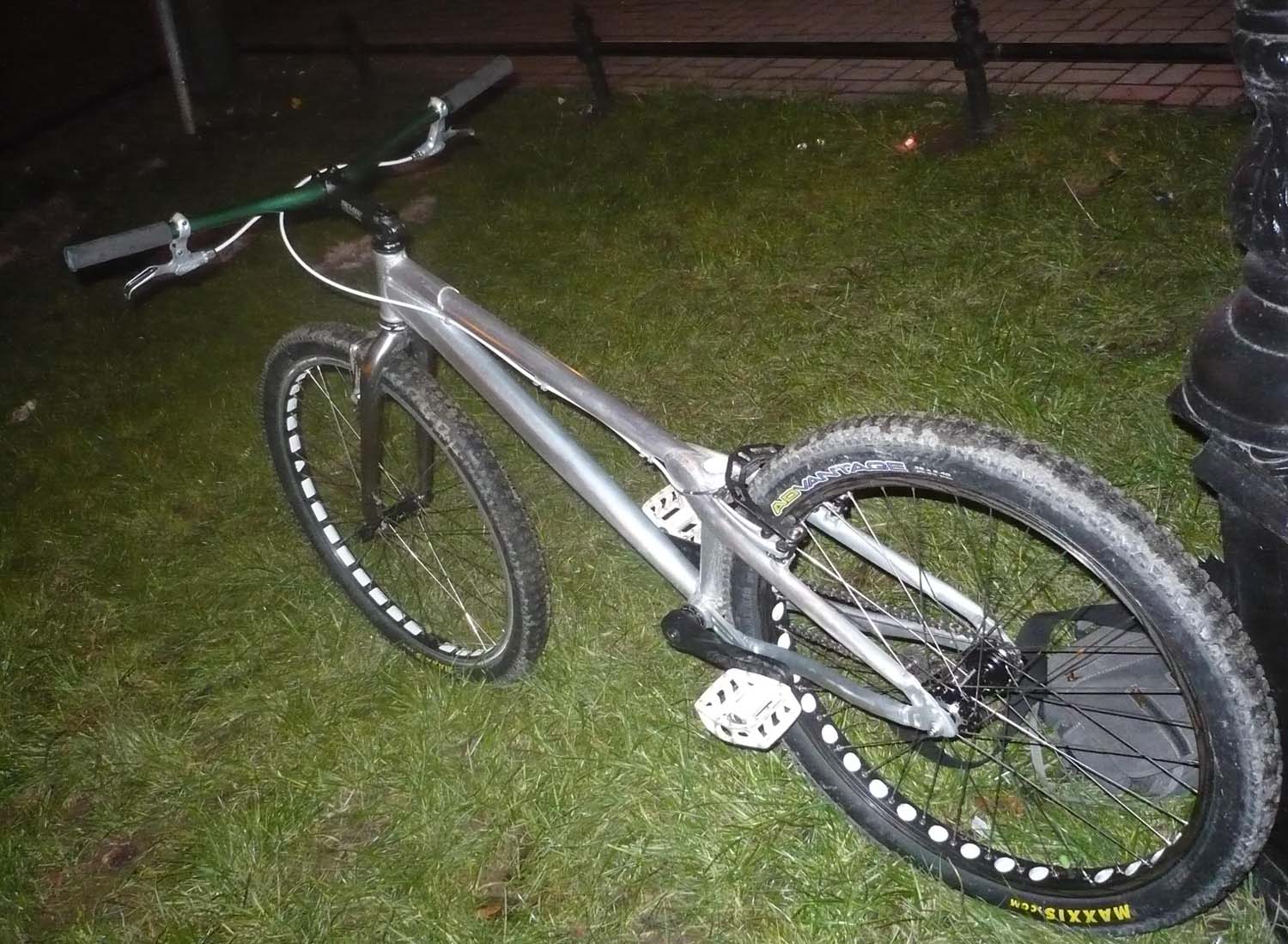 Димчик:Сломал на тех соревах руль,сменил вилу,зад. втулку поставил новую,на шатуны фривил,назад звезду,рубашки другие,отпалировал ручки,запилы на раме,дырки в ободе зад.,резину сзади сменил,отшкурил и смыл краску с рамы до конца).....