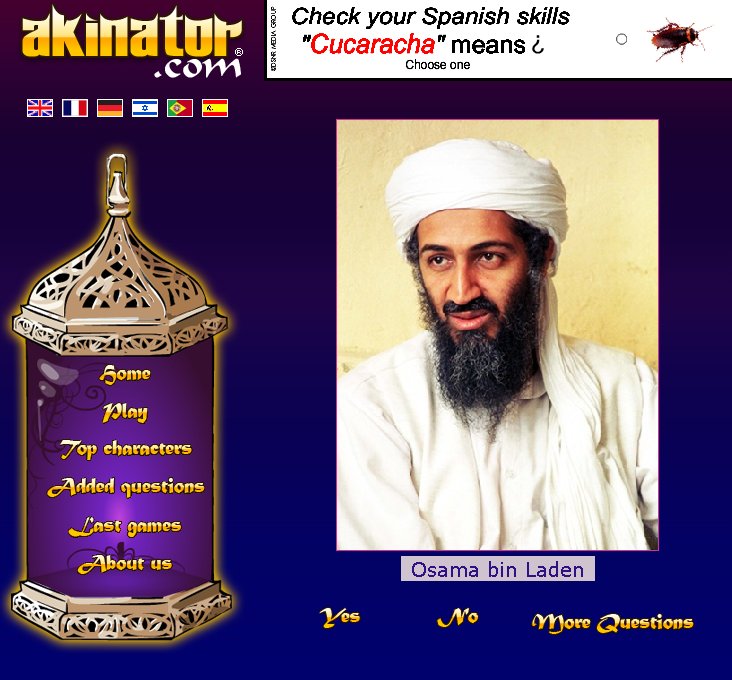 для проверки я загадал Бен Ладена, мигом разгадан -