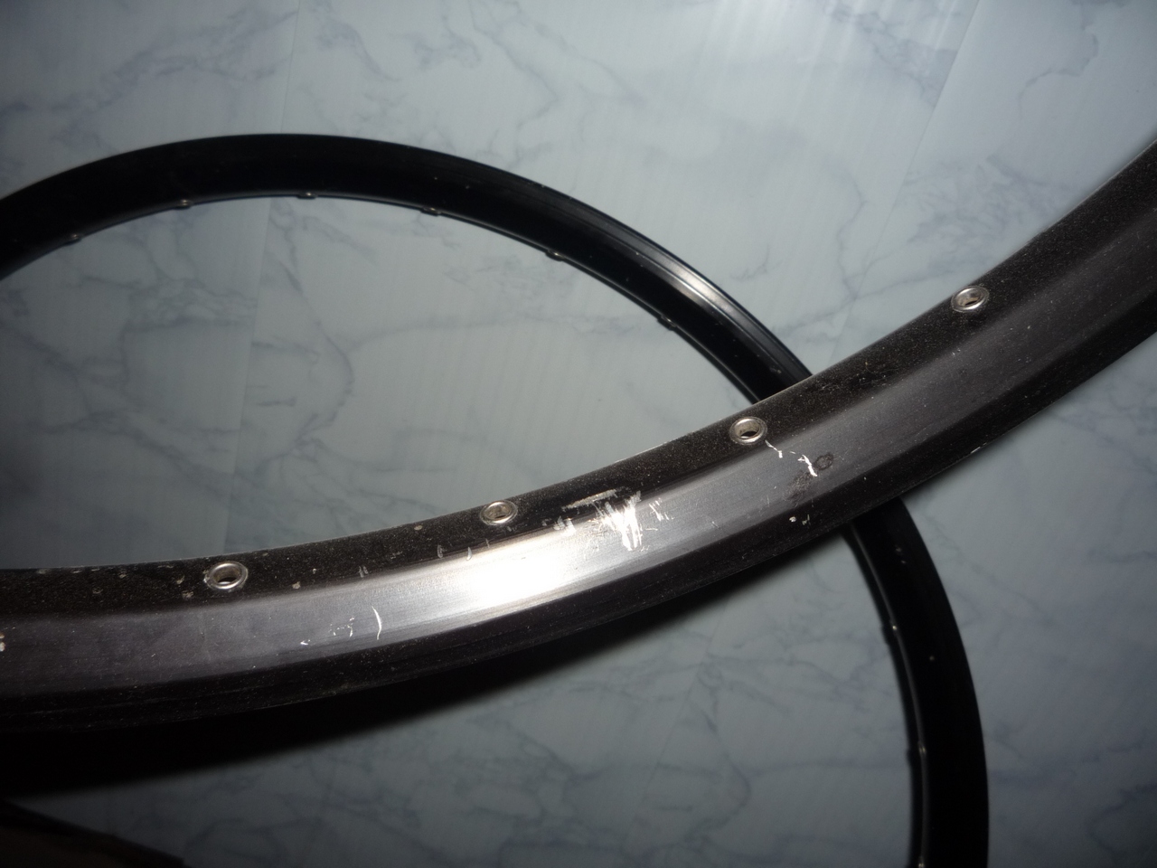 6. Обод DX32, 26х32, ровный, небольшой гринд, крашен в красный как и передний, может стать серебристым по дефолту, цена = 400 рублей,