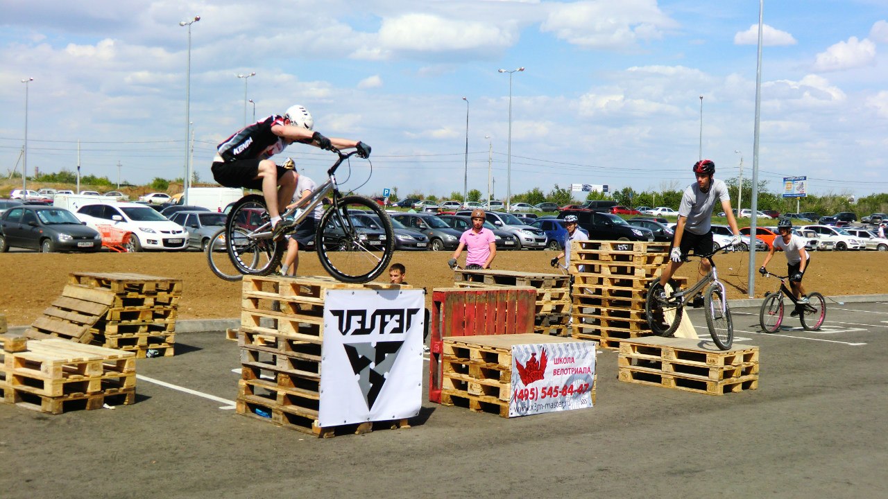 Начинается открытая тренировка... прыжки через планку на фото. Помимо открытой тренировки у нас было 3 показательных выступления, где мы прыгали через людей и и делали синхронное выступление. Было новое и первое выступление с темой дрифта. Мы с парнем Серегой прыгали на задних колесах, разворачиваясь, а вокруг нас в метре, дрифтили машины как в роликах Кен Блока Куски резины и дым, которые летели- добавляли ещё адреналина и сжимания стальных яиц Фото и видео будет позже.