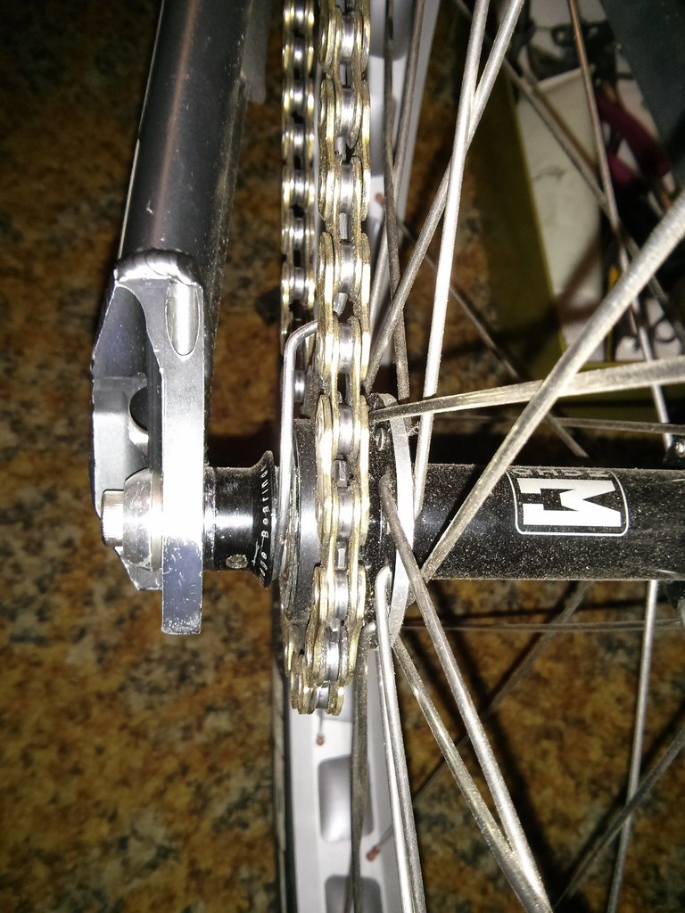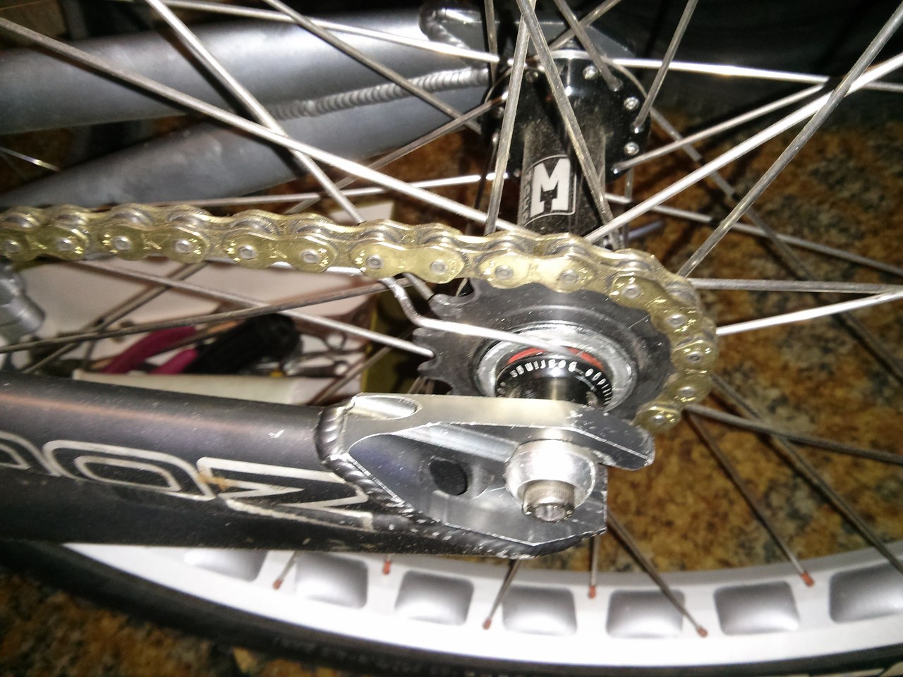 Я оборачивал спицу с одной стороны вокруг цепи, приклеивая дополнительно к ней полиуретан для избавления от шума... дрееееевняя идея.
