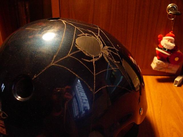 Короче вот. Выцарапал тонком надфилем. Паучка зашкурил мелкой шкуркой. Красить пока не буду. Он получился даже чутка рельефный! На фотке видно плохо.