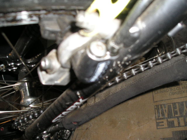 На картинке видно, что когда верхняя часть колодки коснулась обода, нижняя довольно ощутимо не доходит до него. В моём случае 4мм. Такой перекос происходит от того, что штырь крепления тормозов приварен не перпендекулярно перу. Такой дефект встречается почти на каждой второй раме, но на дешёвых конечно чаще. Поэтому я даже не пытался обменять свою раму по гарантии, а просто исправил этот дефект наиболее простым способом.