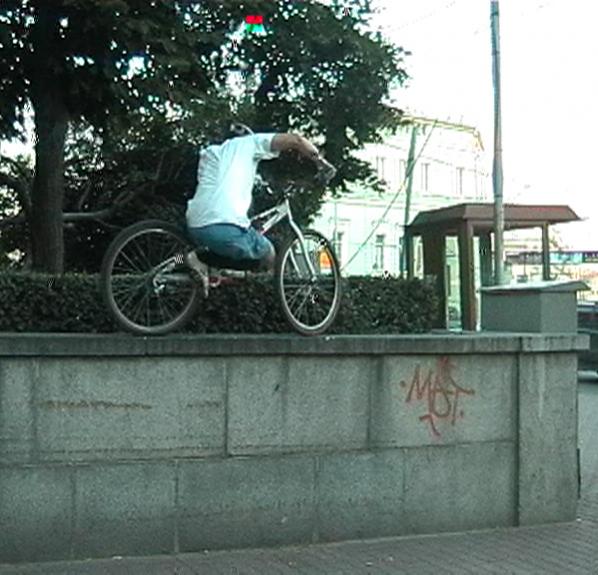 Видео было снято в июне 2008 года. На тот момент я замарачивался на сайды. Камера, на которую я снимал имеет дефект - у нее линия видео и аудио находится на ступеньку ниже, чем снимают обычные камеры. В последний момент, у нее еще порт выхода на комп сгорел. Пришлось брать камеру у друга и скидывать видео через нее. Результат - слевого края на 80 писксей зеленая рябящая полоса и проскальзывающий снег по всей картинке. Я долго пытался найти другие камеры, но к сожалению эффект один и тот же. Я все же решился и доделал клип, сместив картинку на 80 пикселей влево и по-максимум старался убрать рябь и снег. К сожелению, сделать идеально - не получилось. Стоит ли выкладывать видео? скрины чуть ниже