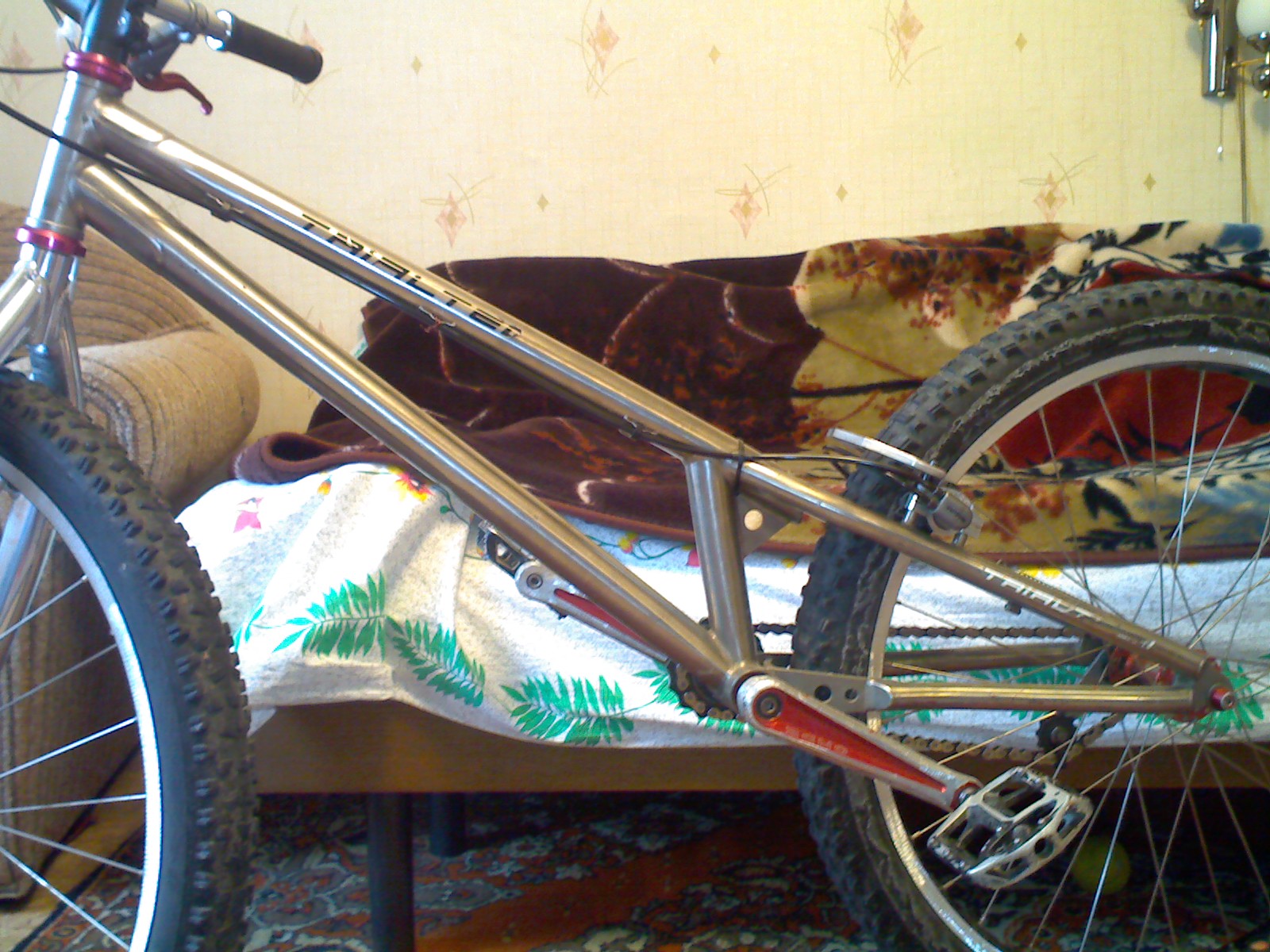 вот хочу продать свою титановую рамку (1075 с вилкой онза/+20) за 4000р. (возможен обоснованный торг). причина продажи - хочу купить рамку по-длиннее (Zhi Z1 2009 года). на этой раме катался аккуратно, без жестоких прыжков, ибо уровень невысок... рама в отличном состоянии! есть малюсенькая вмятинка на нижней трубе (на фотке она прямо по центру трубы. это видно "невооружённым" глазом) и чутка поцарапанное правое перо от сайдов (ну куда ж без этого). контакты: ЛС, тема, аська 594-185-88нуль, а там уже могу дать моб.тел., если потребуется и обговорим.