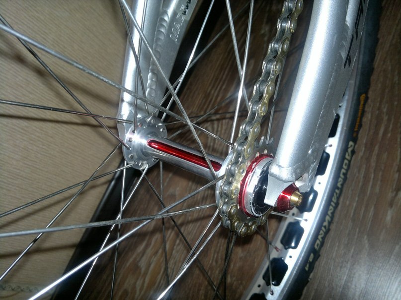 пер втулка Verzin SL, зад втулка Bonz распиленная и отполированная. Оси для эстетики анодированы в красный