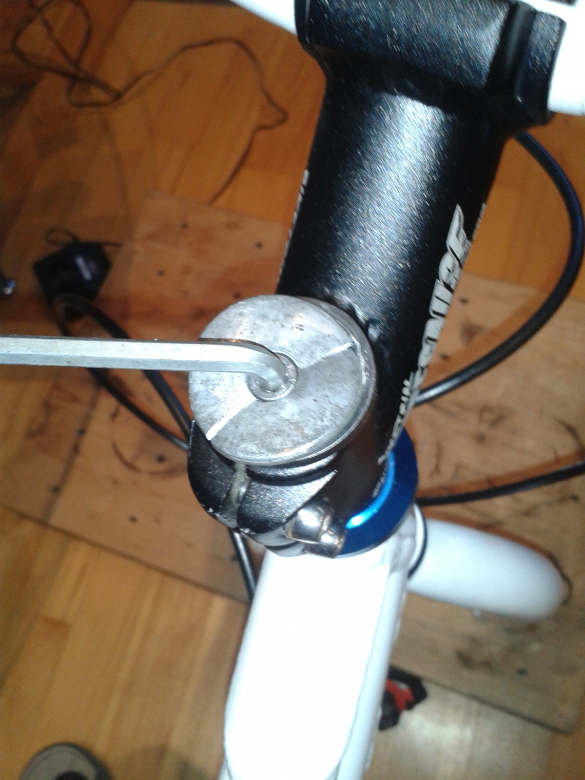 А снизу чтоб шток не выпресовывался из ног поставил болт, но метчик не дотянулся до 2 дырки, и я на пох начал затягивать чтоб(хотел болтом нарезать) но шляпку оторвало, за 1.5мм до выхода болта.