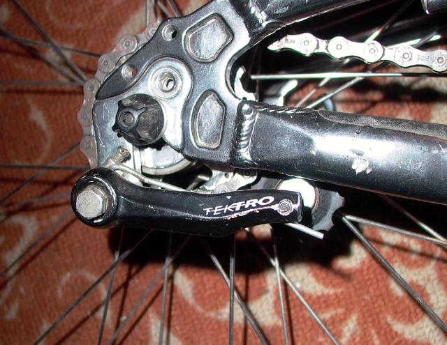 Скажу сразу-разработан натяжитель весом примерно в 40 грамм,вот метод сборки-берём самый дешёвый рычаг от вибрейка выбиваем колечко которым этот рычаг крепится на штырёк рамы,прикручиваем это всё к петуху с внутренней стороны(прикручивать надо той штукой что натягивает тросик в тормозной ручке как нестранно резьба подходит к петуху),потом берем пружину этого рычага и пропускаем через отверстие этой самой натяжки и обворачиваем вокруг петуха потом гденть цепляем,а к той дырке в которую был вставлен болт для зажатия троса вставляем тонкий длинный болт и надеваем ролик,вот собственно и всё,я вчера примерно за полчаса сварганил,чтука оч лёгкая и полезная.