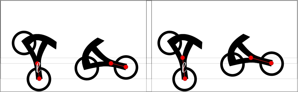 А "рычаг" в перьях - по идее действует в момент прелоада, но и то, здесь надо считать не перья, а длину задняя ось - руль. Где тут перья?.. и то, че этот рычаг "поднимает"?.. Чем длиннее это расстояние, тем большую амплитуду можно получить при прелоаде, вот это уже хорошо при сайде..