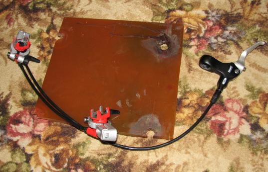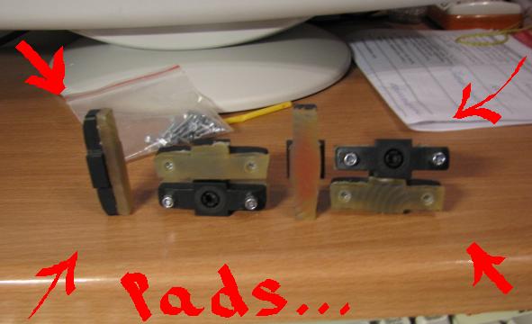 ЗЫ на фотке к колодкам приклеен кусок резины. получилось отстойно, слишком мягко, торможение не очень, а также сильно прожимается ручка маги.