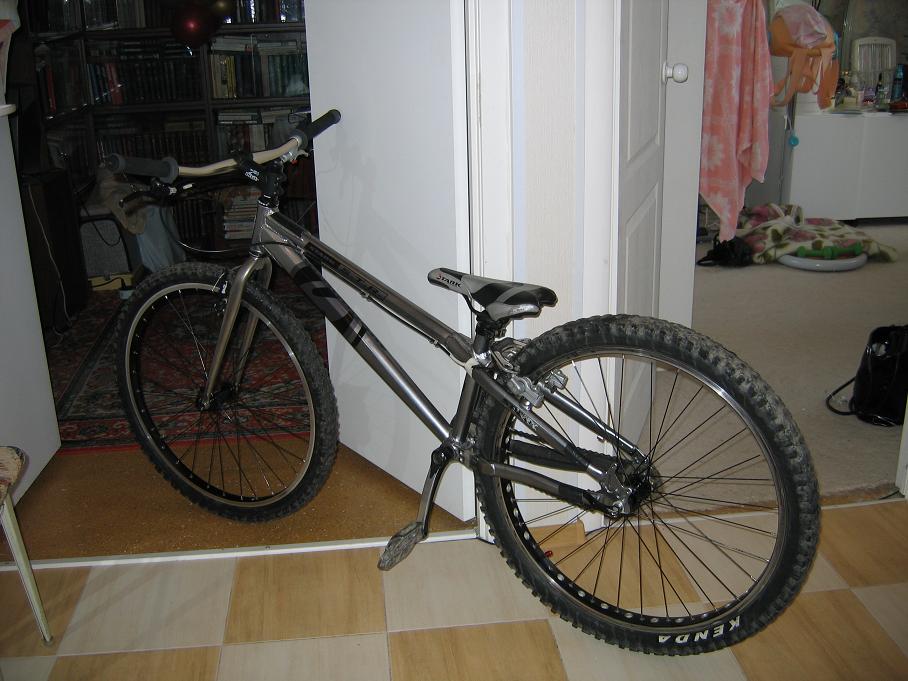 вес кстати можно на 1.5 кг легко уменьшить (триальные покрышки поставить вместо даунхильной и говняной и седло убрать ...ну а если еще задний обод 20мм дырочками укропить...поверх 16мм то ваще все 1.6 ))
